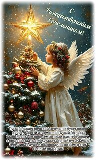 C Рождественским сочельником! Пускай Рождественский сочельник будет полон добра, радости и гармонии! Пускай Господь благословит всю твою семью и близких тебе людей, а яркая звезда на небе укажет верный путь! Желаю тебе мира в душе и благополучия во всем в этот светлый праздник!