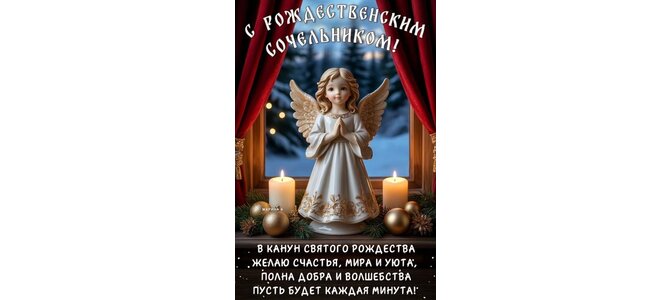 Открытка "С РОЖДЕСТВЕНСКИМ СОЧЕЛЬНИКОМ! В КАНУН СВЯТОГО РОЖДЕСТВА ЖЕЛАЮ СЧАСТЬЯ, МИРА И УЮТА, ПОЛНА ДОБРА И ВО"
