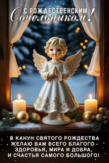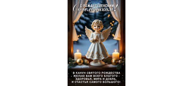 Открытка "С РОЖДЕСТВЕНСКИМ СОЧЕЛЬНИКОМ! В КАНУН СВЯТОГО РОЖДЕСТВА ЖЕЛАЮ ВАМ ВСЕГО БЛАГОГО - ЗДОРОВЬЯ, МИРА И Д"