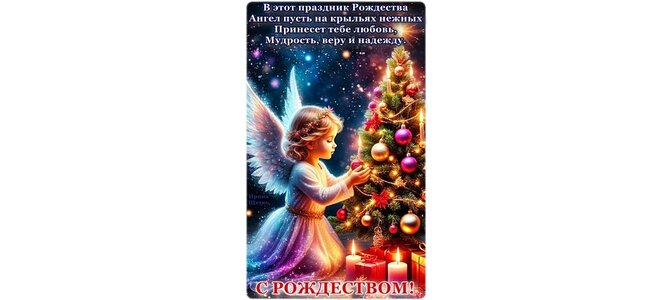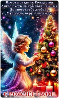 В этот праздник Рождества Ангел пусть на крыльях нежных принесет тебе любовь, мудрость, веру и надежду. С Рождеством!