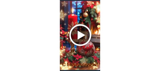 Видеооткрытка "С Рождеством! Этот праздник наполняет душу каждого теплом, боль на сердце исцеляет милосердьем..."