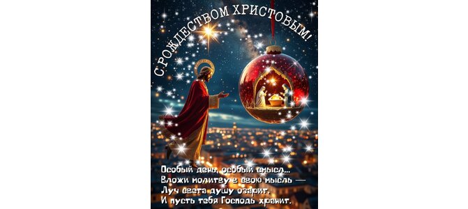 С Рождеством Христовым! Особый день, особый смысл... Вложи молитву в свою мысль - луч света душу озарит и пусть тебя Господь хранит.