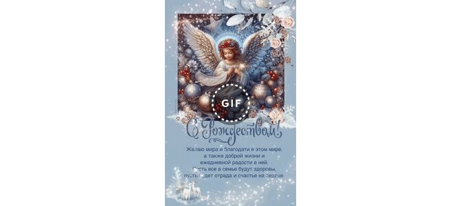 Анимированная открытка "С Рождеством! Желаю мира и благодати в этом мире, а также доброй жизни и ежедневной радости в ней."