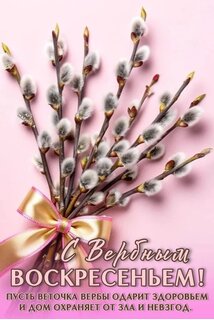 Открытка "С ВЕРБНЫМ ВОСКРЕСЕНЬЕМ! ПУСТЬ ВЕТОЧКА ВЕРБЫ ОДАРИТ ЗДОРОВЬЕМ И ДОМ ОХРАНЯЕТ ОТ ЗЛА И НЕВЗГОД."
