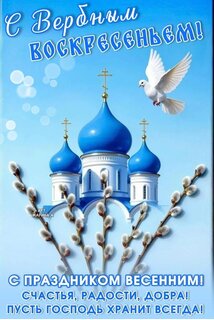 Открытка "С ВЕРБНЫМ ВОСКРЕСЕНЬЕМ! С ПРАЗДНИКОМ ВЕСЕННИМ! СЧАСТЬЯ, РАДОСТИ, ДОБРА! ПУСТЬ ГОСПОДЬ ХРАНИТ ВСЕГДА!"