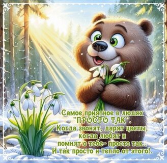 Самое приятное в людях "Просто так". Когда звонят, дарят цветы, когда любят и помнят о тебе - просто так... И так просто и тепло от этого!..