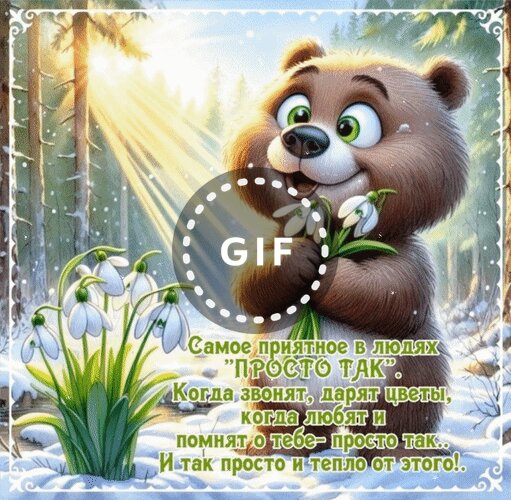 Анимированная открытка "Самое приятное в людях Просто так . Когда звонят, дарят цветы, когда любят и помнят о тебе - просто"