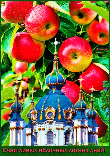 Анимированная открытка "Счастливых яблочных летних дней!"