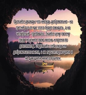 Сделайте дважды что-нибудь добровольно - на третий раз от вас этого будут ожидать, а на четвёртый - требовать. Знайте цену своему труду и цените свою жизнь и время по достоинству. Окружайте себя людьми доброжелательными, а не паразитирующими и не дающими ничего взамен.