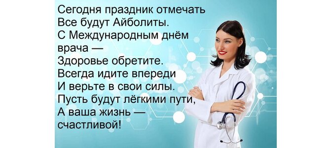Теги:сегодня праздник отмечать все будут айболиты с международным днём врача здоровье обретите всегда идите впереди и верьте в свои силы пусть будут лёгкими пути, а ваша жизнь счастливой