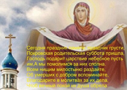 Теги:сегодня праздник памяти, праздник грусти, покровская родительская суббота пришла, господь подарит царствие небесное пусть им, помолимся, них, сполна, всем, нищим, милостыню, раздайте, об умерших с добром вспоминайте, благодарите в молитвах за их дела