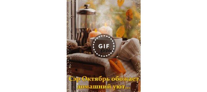 Анимированная открытка "Сэр Октябрь обожает домашний уют..."