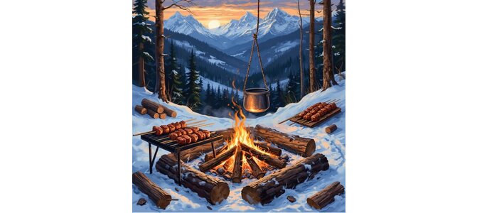 Шашлыки, костер, чай