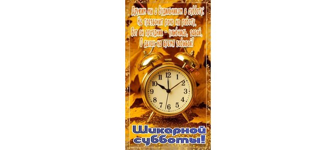 Открытка "Шикарной субботы. Дружим мы с будильником в субботу. Не трезвонит рано на работу..."