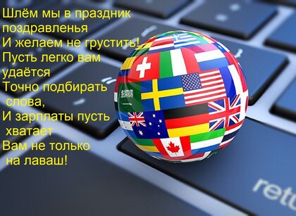 Открытка "Шлём мы в праздник поздравленья и желаем не грустить! Пусть легко вам удаётся точно подбирать слова,"