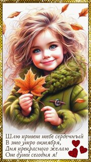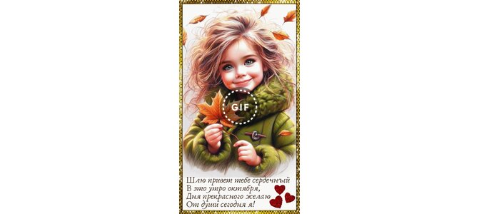 Анимированная открытка "Шлю привет тебе сердечный в это утро октября, дня прекрасного желаю от души сегодня я!"
