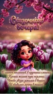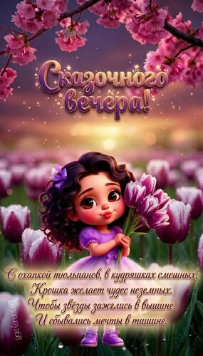 Теги:сказочныйвечер, весна, весенний вечер, тюльпаны, девочка, открытка для всех