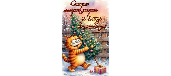Открытка "Скоро март, пора ёлку выносить"