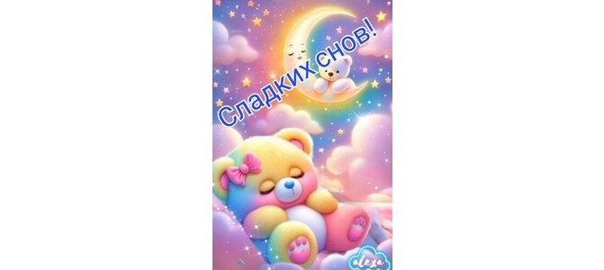 Плюшевый медвежонок спит в кроватке, вина ним весит месец в облаках