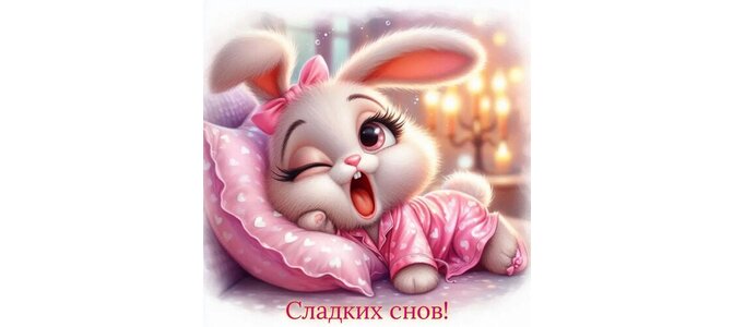 Мультяшная зайка засыпает в своей кроватке "Сладких снов!"