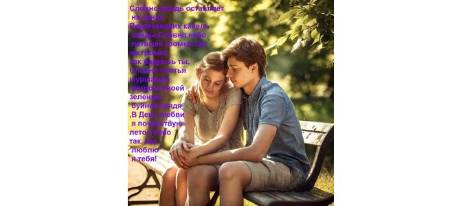 Теги:словно, дождь, оставляет, окнах, подтекающих, капель, следы, словно небо летящее громко, так же громко, как радуешь ты, словно листья шуршащие ветром, своей зеленью буйной глядя, в день любви я почувствую лето