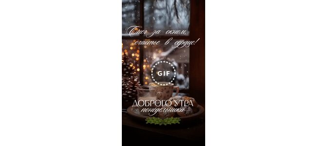 Анимированная открытка "Снег за окном, счастье в сердце! Доброго утра понедельника."