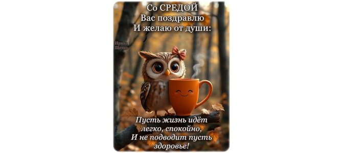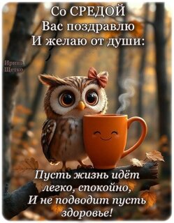 Со средой вас поздравлю и желаю от души: пусть жизнь идёт легко, спокойно, и не подводит пусть здоровье!