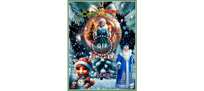Теги:заснеженный лес, ёлка, дед мороз, вращающийся новогодний шар, снегурочка в шаре, молодой символ года, будильник, 3d текст