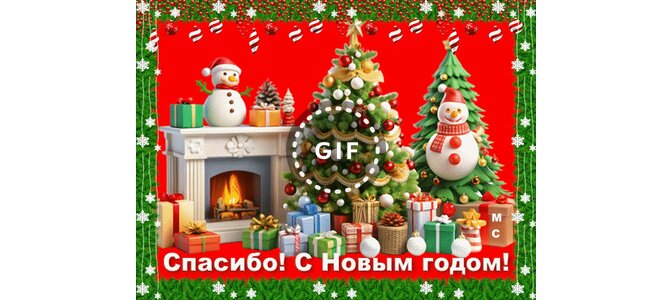 Анимированная открытка "Спасибо! С Новым годом!, (М. С.)"