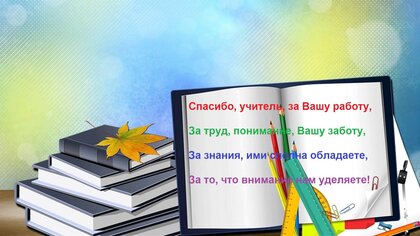 Спасибо, учитель, за вашу работу, за труд, понимание, вашу заботу. За знания, ими сполна обладаете, за то, что внимание нам уделяете!