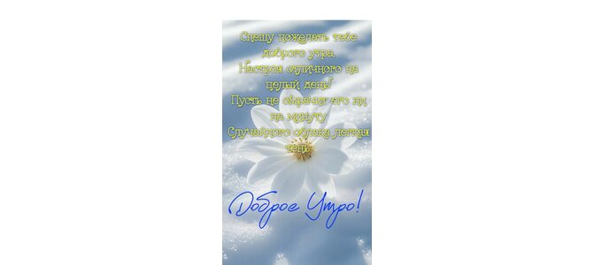 Спешу пожелать тебе доброго утра, настроя отличного на целый день! Пусть не омрачит его ни на минуту случайного облака легкая тень. Доброе утро!