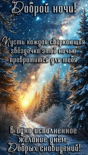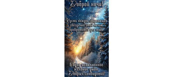 Доброй ночи! Пусть каждая сверкающая звёздочка этой ночью превратится для тебя в одно исполненное желание днём. Добрых сновидений!