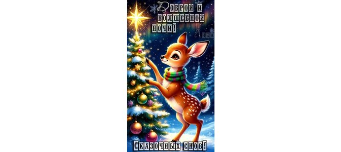 Теги:спокойной ночи, ночь, доброй ночи, красивая картинка, снег, зима, елкаолененок, сказка, тихой ночи, сказочных снов, пожелания на каждый день