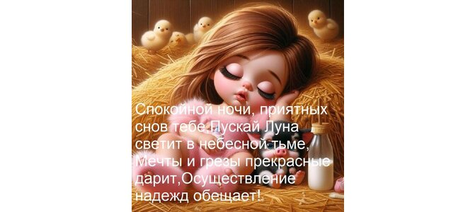 Теги:спокойной ночи, приятных снов тебе, пускай луна светит в небесной тьме, мечты и грезы прекрасные дарит, осуществление надежд обещает