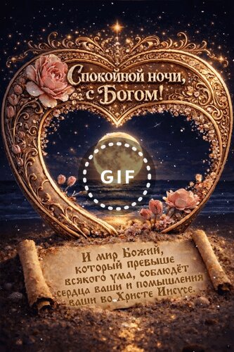 Анимированная открытка "Спокойной ночи, с Богом! И мир Божий, который превыше всякого ума, соблюдёт сердца ваши и помышления"