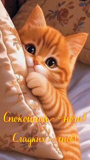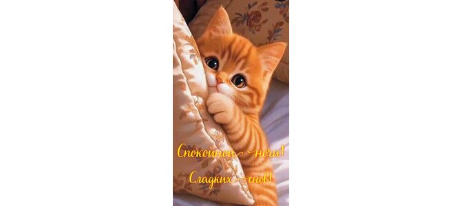 Котëнок лежит на подушке. Спокойной ночи! Сладких снов!