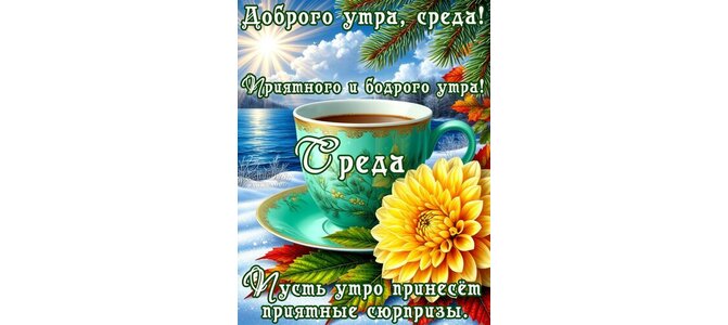 Доброго утра, среда! Приятного и бодрого утра! Пусть утро принесёт приятные сюрпризы.