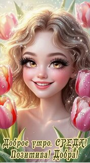 Теги:среда, дни недели, доброе утро, девушка, бабочка, цветы, тюльпаны, гифка, анимация, красивая анимация, весна, лето, добра