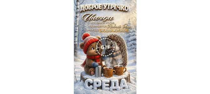 Анимированная открытка "Среда Доброе утречко! Иногда с чашечки кофе начинается новый день... А иногда, новая жизнь!"