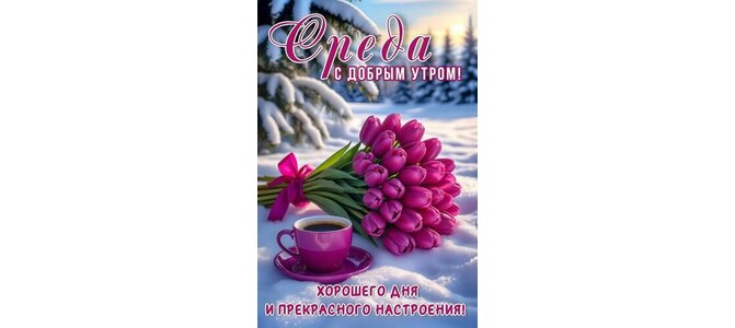 Открытка "СРЕДА. С ДОБРЫМ УТРОМ! ХОРОШЕГО ДНЯ И ПРЕКРАСНОГО НАСТРОЕНИЯ!"