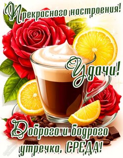 Теги:среда, утро, лимон, кофе, чашка кофе, цветы, розы, про удачу, дни недели