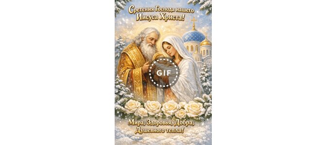 Анимированная открытка "Сретение Господа Нашего Иисуса Христа! Мира, здоровья, добра, душевного тепла!"
