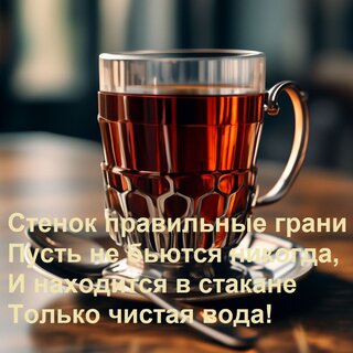 Стенок правильные грани пусть не бьются никогда, и находится в стакане только чистая вода!