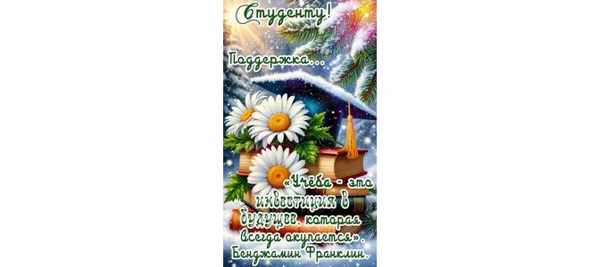 Теги:студенту, день студента, мотивация, цитата про образование, зима, снег, ель, цветы, ромашки, пожелания на каждый день, книги, красивая картинка