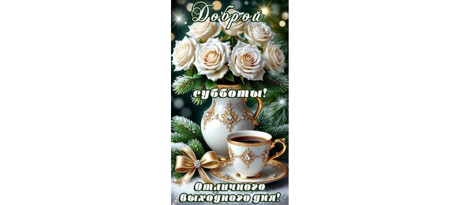 Теги:суббота, дни недели, выходной, красивая картинка, кофе, чашка кофе, цветы, розы, ель, елка, новый год, отличного дня, добрый день