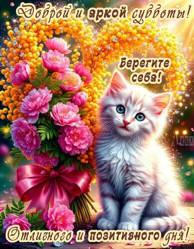 Теги:суббота, выходной, дни недели, котенок, пушистик, милота, сердечко, цветы, мимоза, розы, отличного и позитивного дня, доброй и яркой субботы, красивая картинка