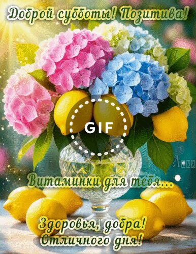 Теги:суббота, фрукты, лимон, цветы, гортензия, анимация, гифка, красивая анимация, витамины для тебя, здоровья, добра, отличного дня, позитива