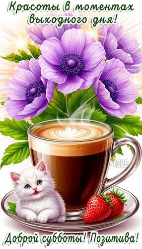 Теги:суббота, дни недели, клубника, котенок, пушистик, фрукты, цветы, анемоны, кофе, доброй субботы, позитива, красоты, выходной