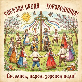 Открытка "Светлая среда-хороводница. Веселись, народ, хоровод веди"