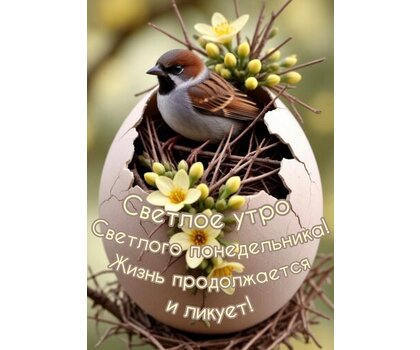Открытка "Светлое утро светлого понедельника. Жизнь продолжается и ликует"
